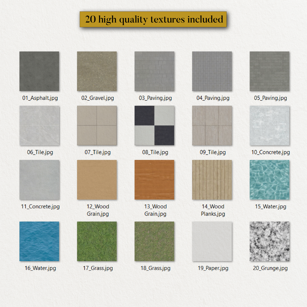 ✔️ 20 high-quality site plan textures, 3K resolution, JPEG format